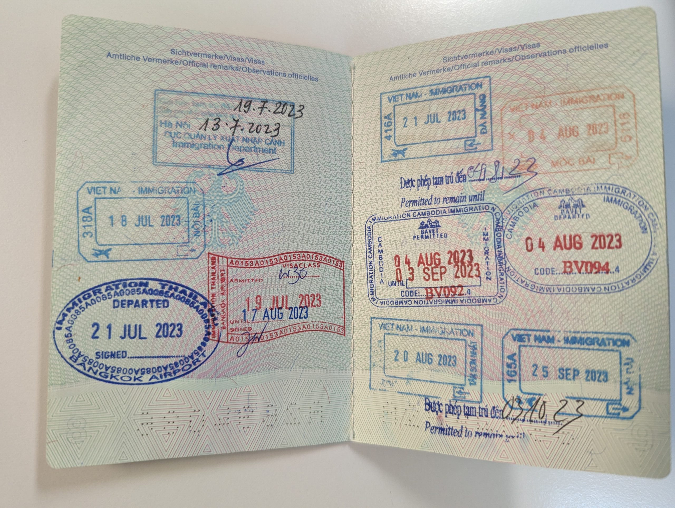 And it wasn’t just any passport. Since it was issued in Vietnam, it had a green cover instead of the usual brown, but still featured the iconic German eagle. That little difference got me a few suspicious looks, which I fully enjoyed. And with all the visa runs I’d been doing, almost all pages were already filled with stamps.
